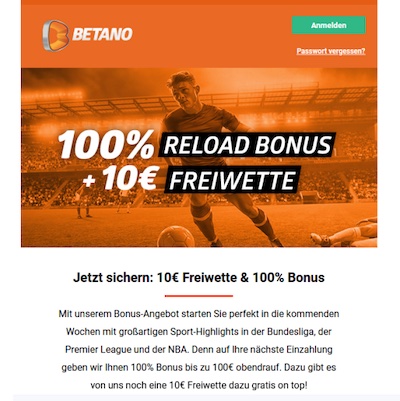 Daneben gibt es auch noch die Aktion aus dem Hause Betano: