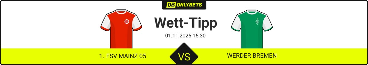 Am Samstag, den 1. November 2025, will der 1. FSV Mainz 05 um 15:30 Uhr endlich die ersten Punkte in der heimischen MEWA-Arena einfahren, wenn der SV Werder Bremen zu Gast ist. Die Grün-Weißen von der Weser allerdings haben sich zuletzt nicht zufällig auf Platz neun vorgeschoben, wohingegen für Mainz das Aus im DFB-Pokal am Mittwoch die nächste Enttäuschung war.